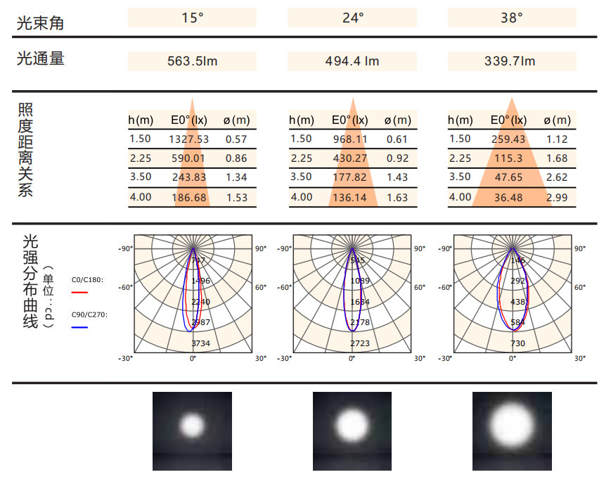 光束角:15°/24°/38°