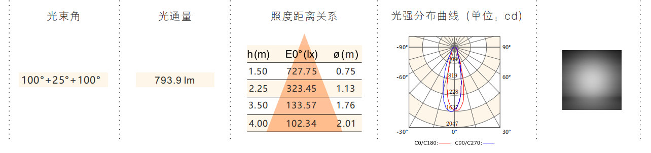 光束角:100°+25°+100°