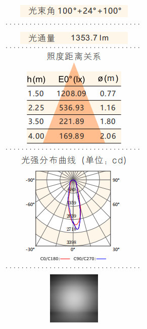 光束角:100°+24°+100°