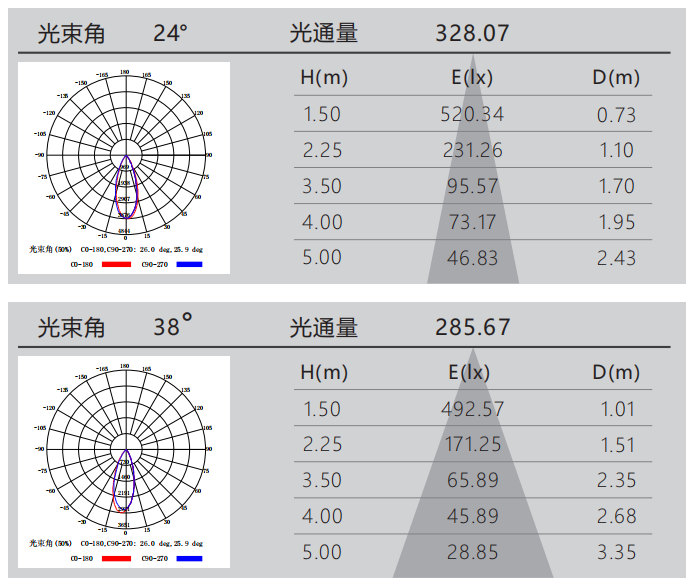 光束角:24°/38°