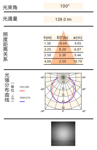 光束角:100°