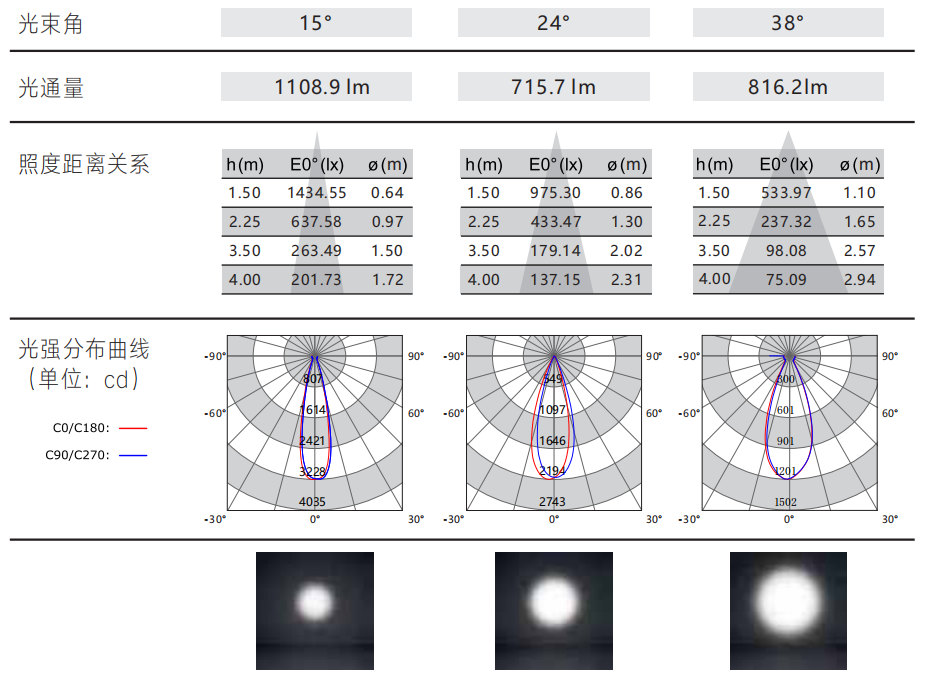 光束角:15°/24°/38°