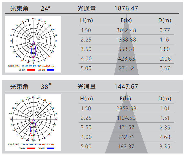 光束角:24°/38°